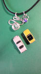 ちょっと旅行へ行ってきて、買ってきたネックレスとコスモスポーツとS800のミニカーです。